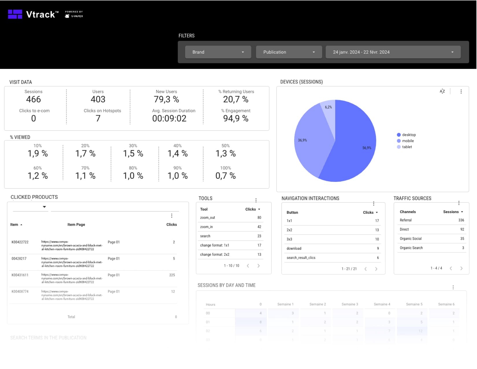 In the digital age, where content is king and data is queen, analyzing performance offers essential opportunities to maximize impact and achieve excellence. V-Paper, with its advanced analytics tool V-Track, provides a powerful dashboard to track, analyze, and optimize the impact of your digital publications. Let's delve into how V-Track transforms data into informed strategic decisions.